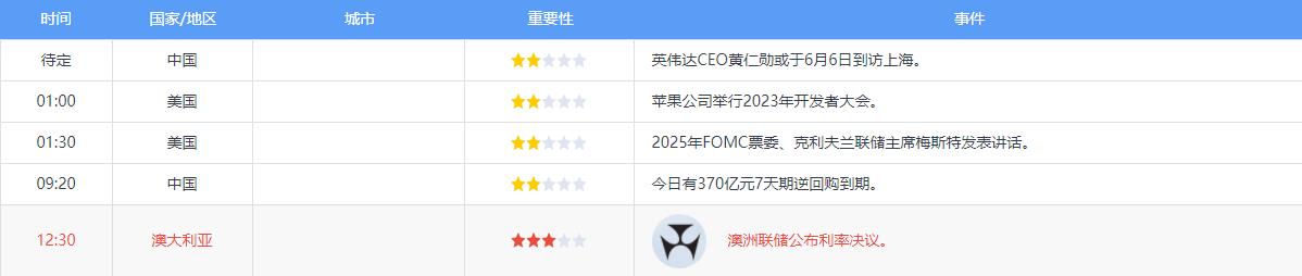关键词:苹果全球开发者大会(WWDC);澳洲联储利率决议;梅斯特;英伟达黄仁勋