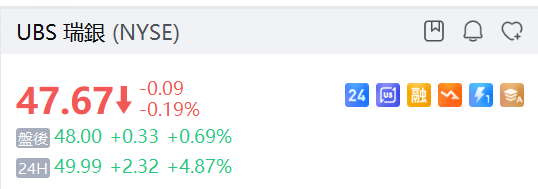 瑞银夜盘升近5%。
