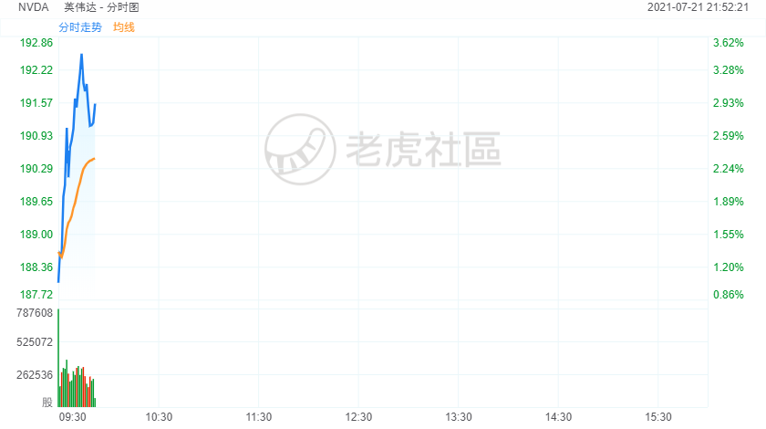 7月21日,英伟达盘初涨超3%,昨日进行了1:4拆股。