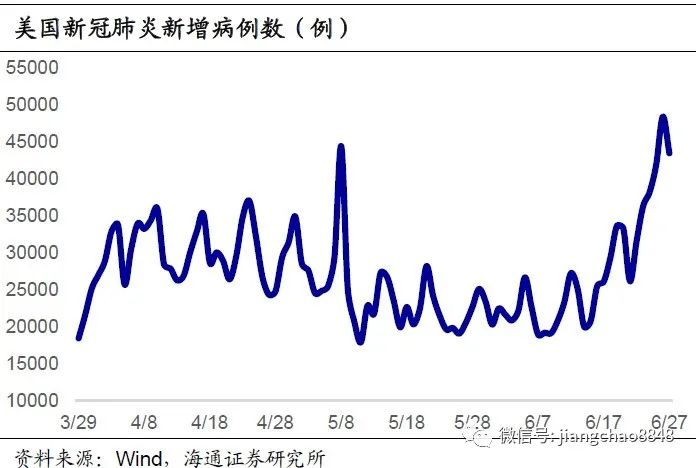 各州暂停进一步复工或将使美国经济的复苏的不确定性上升。4月以来美国经济的回升是建立在疫情逐渐平稳,解封措施不断推进的基础上,但目前美国新增病例创下新高,将增加未来复苏的不确定性。