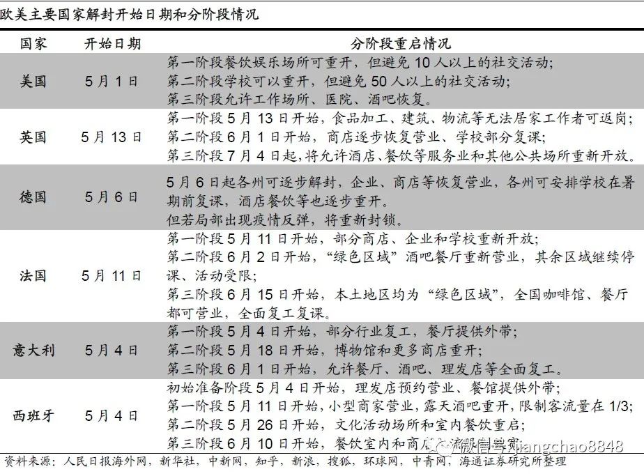 随着疫情蔓延的放缓,欧美主要国家纷纷出台了解封措施。