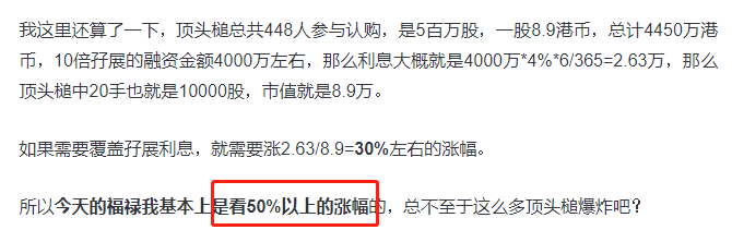 乙头中签率12.5%,46.4万加10倍杠杆即可上乙头,能分到50000股股份共58万港币,首日涨幅21.9%净赚12.7万,回报率高达27%。