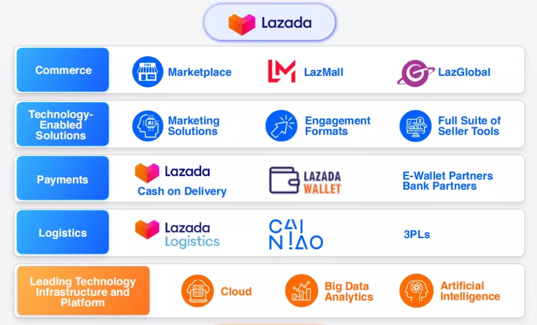 最成熟的Lazada目前已经形成了自己的电商+支付+金融+物流一体化服务。