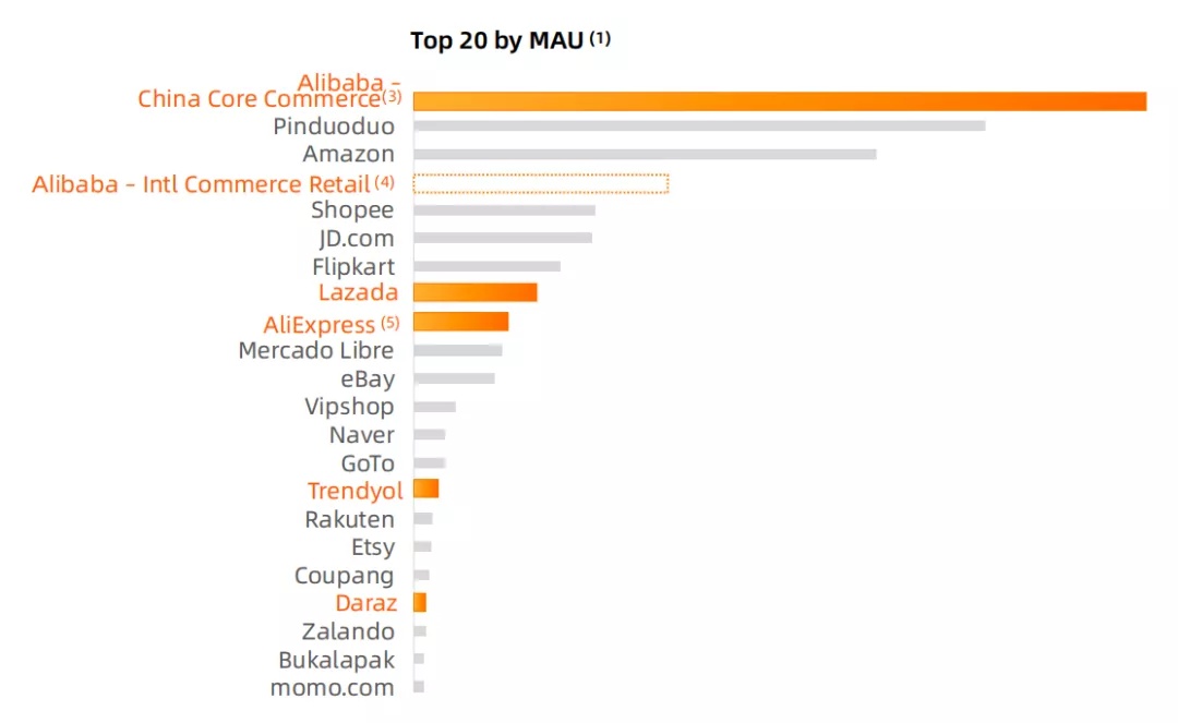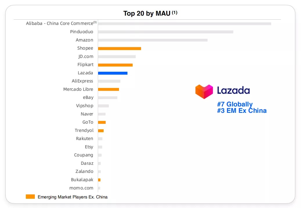 根据APP Annie的数据,Lazada目前是月活用户数全球排名第7的电商平台。
