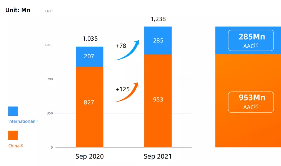 即便国内用户规模已经非常大,过去12个月仍然增加了1.25亿新用户,年度活跃买家数达到9.53亿人。