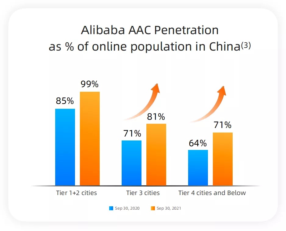 如果仔细看阿里在不同城市的用户渗透情况,你会发现其实阿里在国内商业基础仍然非常稳固。