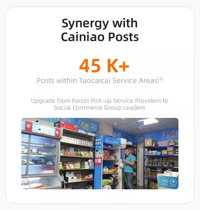 已经有45000多个菜鸟驿站成为淘菜菜的团长提货点,这个数字还将大幅增长。