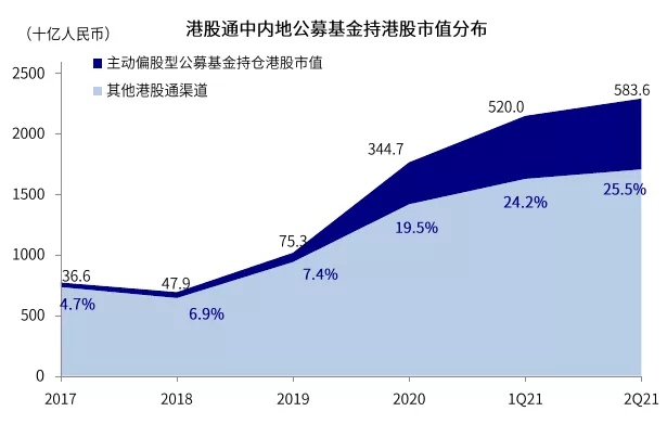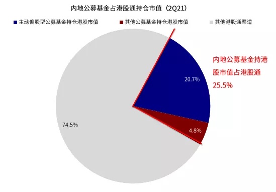 图表:截至2Q21,内地公募基金持股市值占整体南向25.5%