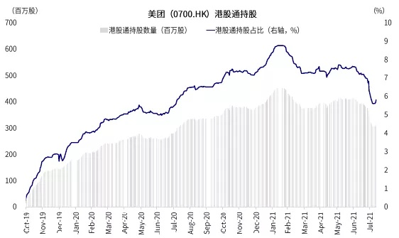 图表:美团南下持续比例从年初高点8.87%回落至目前的5.82%,但仍处于历史持股区间高位