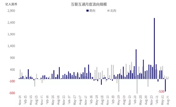2021年年初,公募基金大幅增持港股,成为推动千亿资金流入香港的主要动力之一,南下资金也悄然成为港股市场的中坚力量。但2月中之后,市场特别是港股互联网板块从高点回落,叠加持续不断的政策和监管压力,使得港股市场整体表现疲弱,大幅跑输同期A股和美股,南下在这一背景下也明显趋缓。7月末,市场对于监管的担忧又引发新一轮恐慌性抛售,南下资金大举流出530亿人民币,为自互联互通开通以来之最。