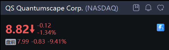 Quantumscape Corp. 跌超9%,Q4亏损收窄,上调2026财年资本支出。