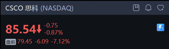 思科 跌超7%。思科第二财季营收同比超预期增10%,超大规模云厂商的AI基础设施订单增长“显著加速”至21亿美元;本财年营收指引至少上调逾1%、第三财季营收指引高于预期,但第三财季毛利率指引不升反降,同比最高降逾3个百分点至65.5%,较第二财季降幅扩大。