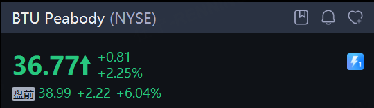 煤炭股Peabody 涨超6%,公司表示正与特朗普政府合作,探讨新建燃煤电厂的可能性。此前特朗普政府下令五角大楼从燃煤电厂购电,并宣布为煤炭设施升级提供资金。
