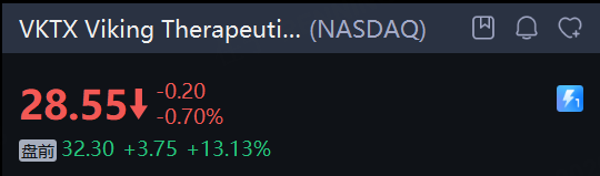 Viking Therapeutics, Inc. 涨超13%。公司宣布计划在今年第三季度将其试验性口服肥胖症药物VK2735推进到后期试验阶段。