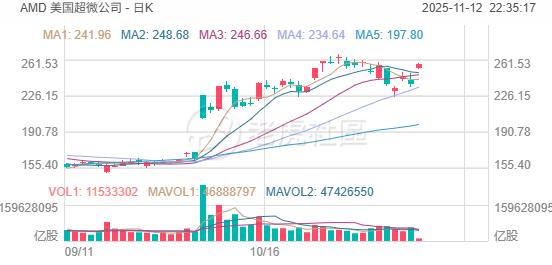 AMD涨超7%。CEO苏姿丰:未来三至五年内,从英伟达主导的市场中夺取“两位数”份额,并在五年内实现1000亿美元收入。