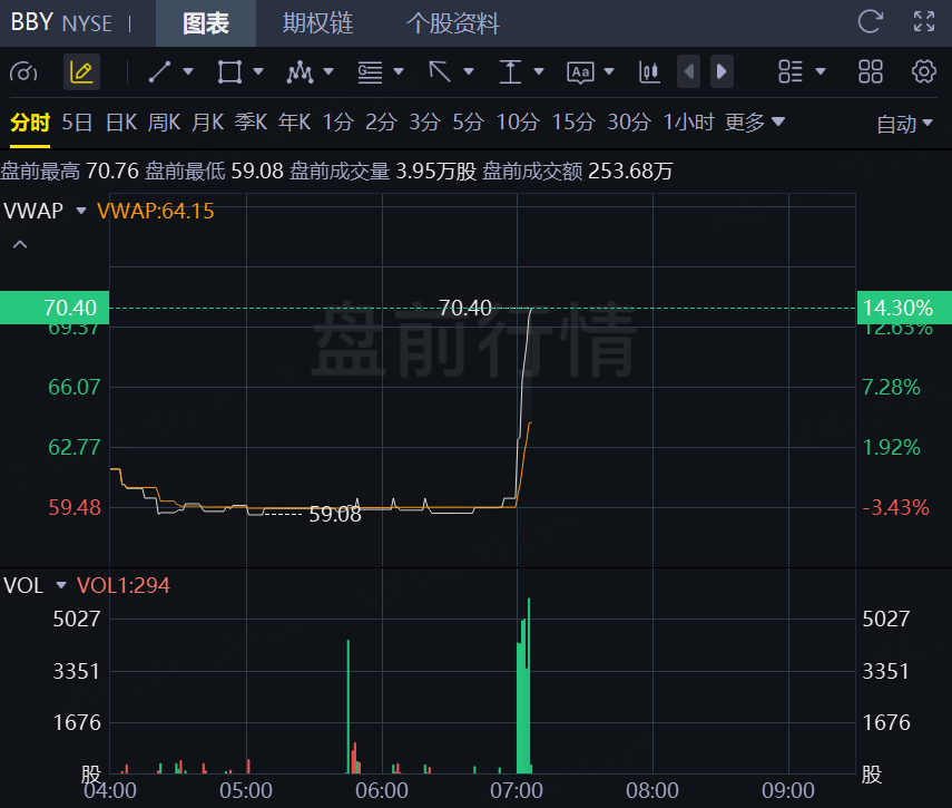 3月3日,百思买盘前飙升逾14%!第四季度调整后每股收益2.61美元,去年同期为2.58美元,市场预期2.46美元。第四季度美国同店销售同比下降0.8%,去年同期增长0.2%,市场预期增长0.24%。第四季度总收入为138.1亿美元,同比下降1%,市场预期138.8亿美元。第四季度毛利率为20.9%,与去年同期持平,市场预期20.8%。