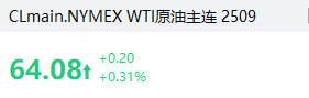 国际油价上涨0.31%,报64.08美元/桶。