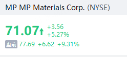 MP Materials涨超9%,二季度业绩超预期,国防部4亿美元投资助力扩产,市场看好未来成长潜力;