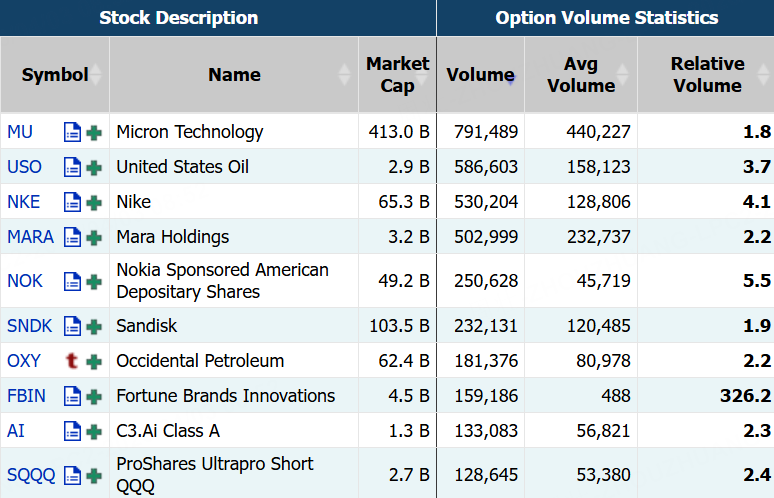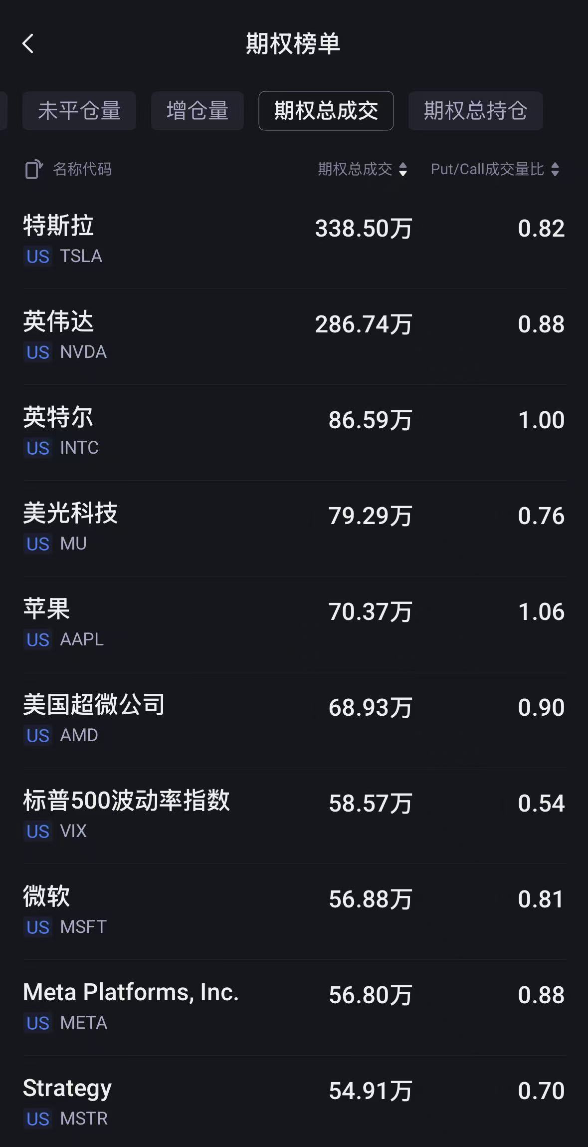 周四,期权市场总成交量5817.3万张合约,低于90日均量;特斯拉当日成交338.5万张,多张Put单大涨,最高飙涨700%;美国原油ETF当日成交58.66万张,较90日均量放大近4倍>>