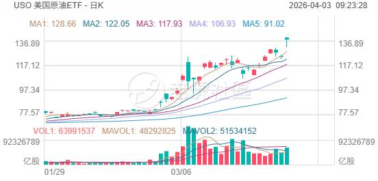 美国原油ETF隔夜大涨逾11%;期权方面,美国原油ETF当日成交58.66万张,较90日均量放大近4倍,看涨期权占比攀升至46.1%,其中于4月2日到期的140美元行使价的看涨期权成交居前,成交超1.5万张。