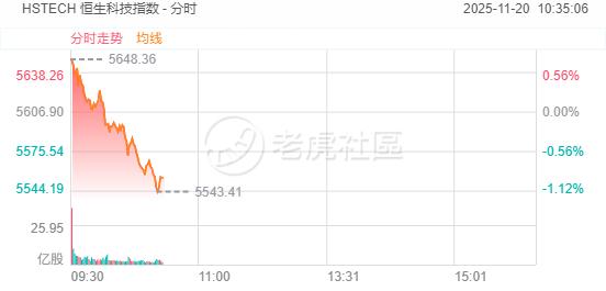 11月20日,港股盘中走低,恒生科技指数日内跌超1%。
