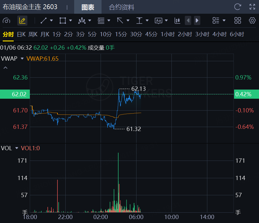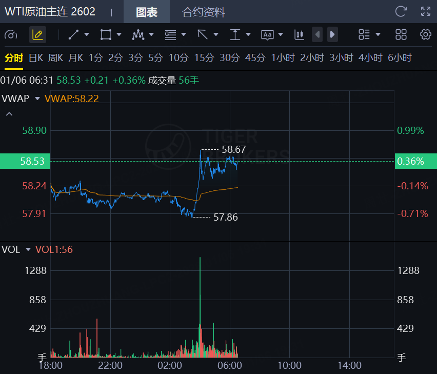 原油期货小幅拉升,截止发稿,WTI原油涨0.36%,报58.53美元/桶;布伦特原油涨0.42%,报62.02美元/桶。