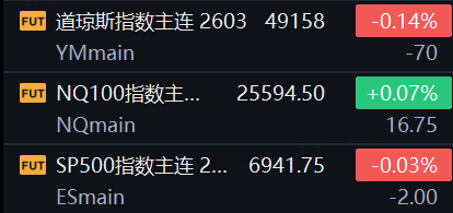 1月6日,美股三大股指期货涨跌不一,截止发稿,道指期货跌0.14%,纳指期货涨0.07%,标普500指数期货跌0.03%。