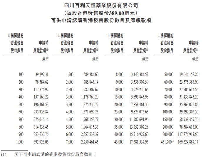 百利天恒 (02615)今日起至下周三(11月12日)招股,发售863.43万股H股,香港公开发售占10%,国际配售占90%;每股招股价介乎347.5港元至389港元,集资最多33.59亿元。