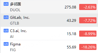 AI应用软件股下跌,Figma暴跌18%,C3.ai大跌9%,GitLab跌超7%,多领国跌2%