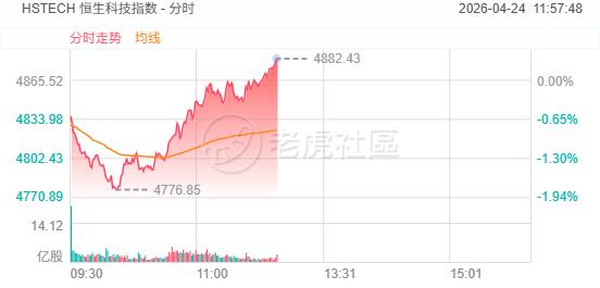 临近午间收盘,港股三大指数全线拉升,恒生科技指数、国企指数转涨。