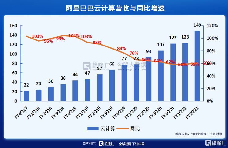该季度阿里巴巴云计算实现收入148.99亿元,同比增长60%,来自互联网、金融及零售行业的客户收入增长共同推动了云计算业务的高速增长。
