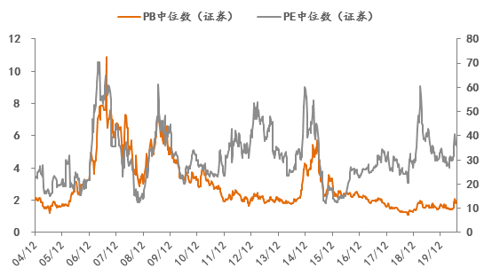 从券商的历史估值(PE和PB)变化的角度看,到8月7日,PE的中位数为36倍,并不算便宜,因为历史的最低位是在2015年9月的12.2倍,但也算是处在历史的估值偏低位置,从PB看,为1.89倍,历史最低的估值是2018年10月的1.07倍。对比一下美国的头部券商高盛,当前PE只有13倍,PB不足0.8倍,即低于净资产;摩根斯坦利的PE和PB也分别只有8.7倍和0.9倍。