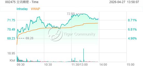 受利好消息提振,周一立讯精密触及涨停,成交额170.11亿元。