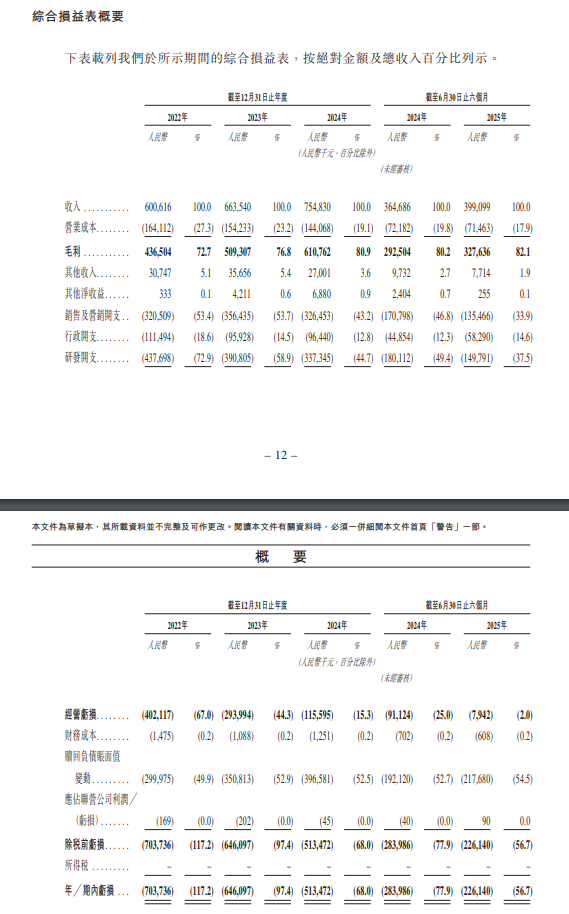 财务方面,于2022年度、2023年度、2024年度、2025年截至6月30日止六个月,群核科技收入分别约为6.01亿元、6.64亿元、7.55亿元、3.99亿元人民币;同期,年╱期内亏损约为7.04亿元、6.46亿元、5.13亿元、2.26亿元人民币。