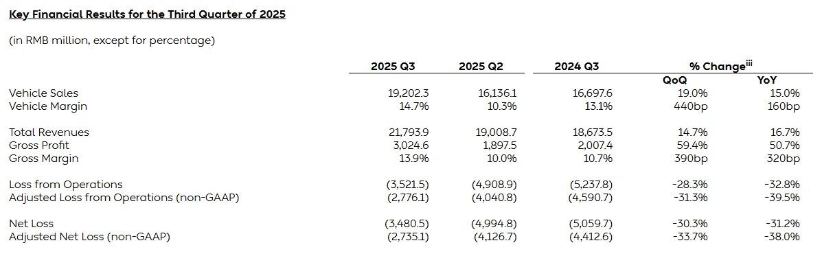 三季度共交付了87,071辆汽车,较2024年第三季度增长40.8%,较2025年第二季度增长20.8%。