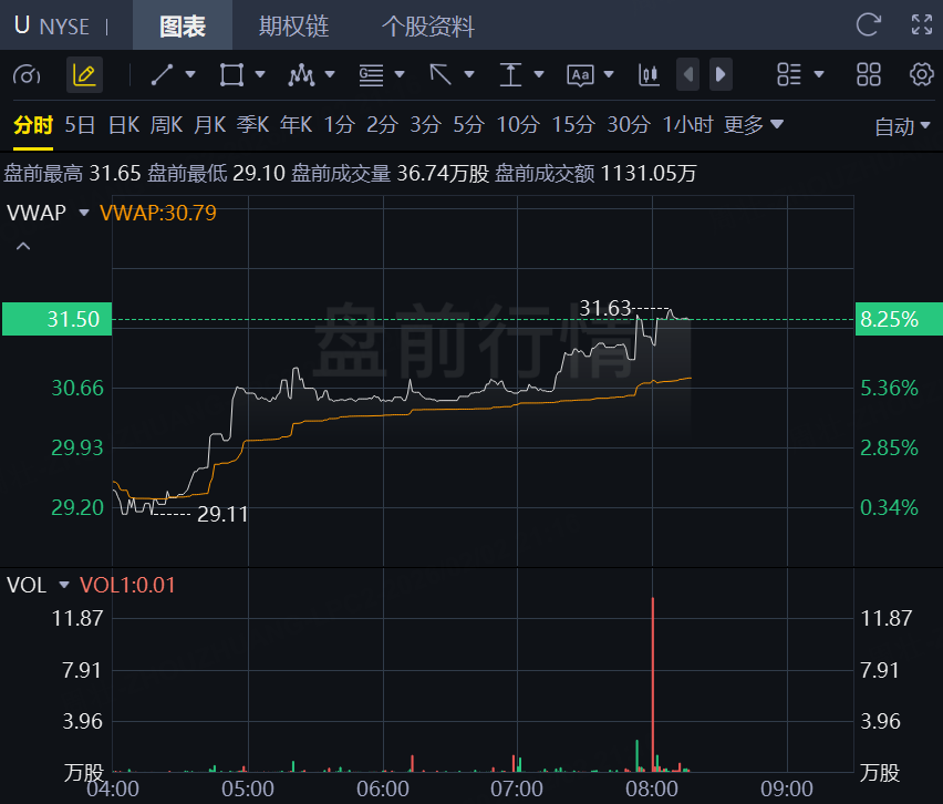 2月2日,美股AI应用软件股盘前集体反弹,Unity涨超8%,Applovin涨超5%,Roblox、SAP涨超2%。