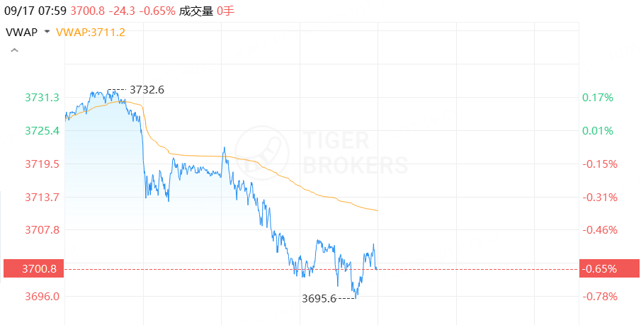 黄金期货下跌,截止发稿,跌0.65%,报3,700.8美元/盎司。