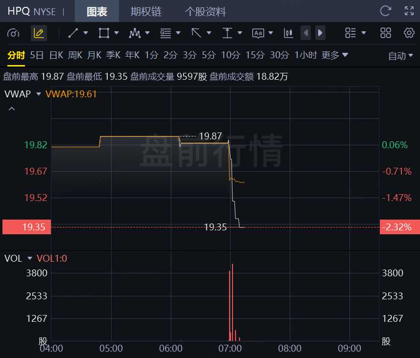 2月3日,惠普盘前跌超2%!公司宣布任命Bruce Broussard为临时首席执行官,即刻生效,他将接替Enrique Lores的职务,后者已辞去总裁兼首席执行官及董事会成员职务,以追求新的职业发展机会。
