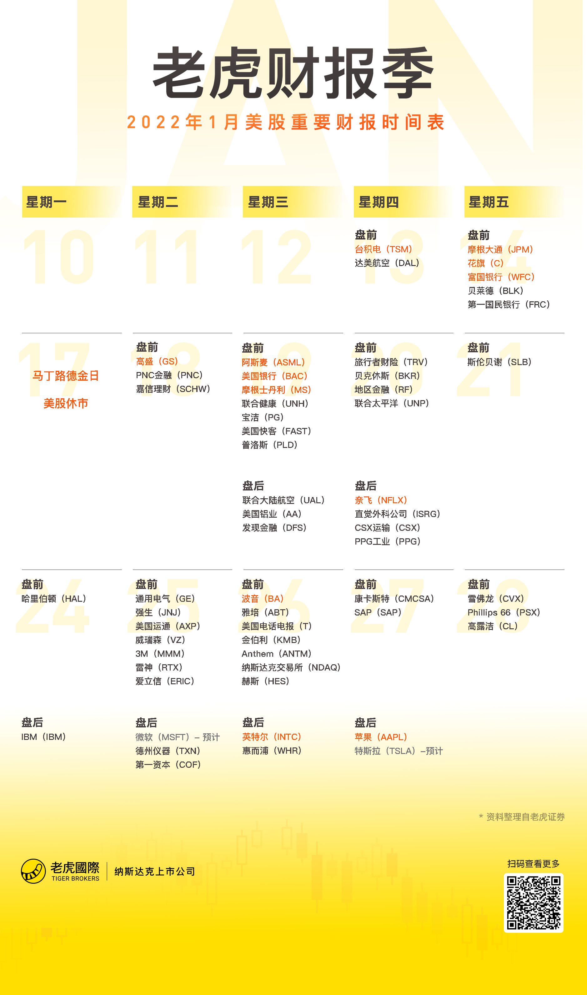 本周,台积电领衔拉开美股Q4财报季帷幕,银行股、航空股财报接踵而来,奈飞、英特尔、苹果等重磅科技股财报也将在春节前到来。在经历去年的大涨之后,企业盈利能否支撑美股继续走高?