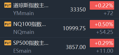 1月4日,美股三大股指期货震荡走高,截至发稿,道指期货涨0.22%,纳斯达克100指数期货涨0.5%,标普500指数期货涨0.29%。