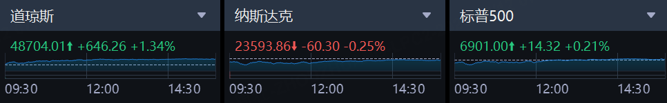 美东时间周四,美股三大指数收盘涨跌不一,标普500指数与道指携手创下收盘历史新高。由于甲骨文的财报令投资者对人工智能(AI)投资前景心存疑虑,科技权重更高的纳指表现不佳。截至收盘,道指涨646.26点,涨幅为1.34%,报48704.01点;纳指跌60.30点,跌幅为0.25%,报23593.86点;标普500指数涨14.31点,涨幅为0.21%,报6900.99点。
