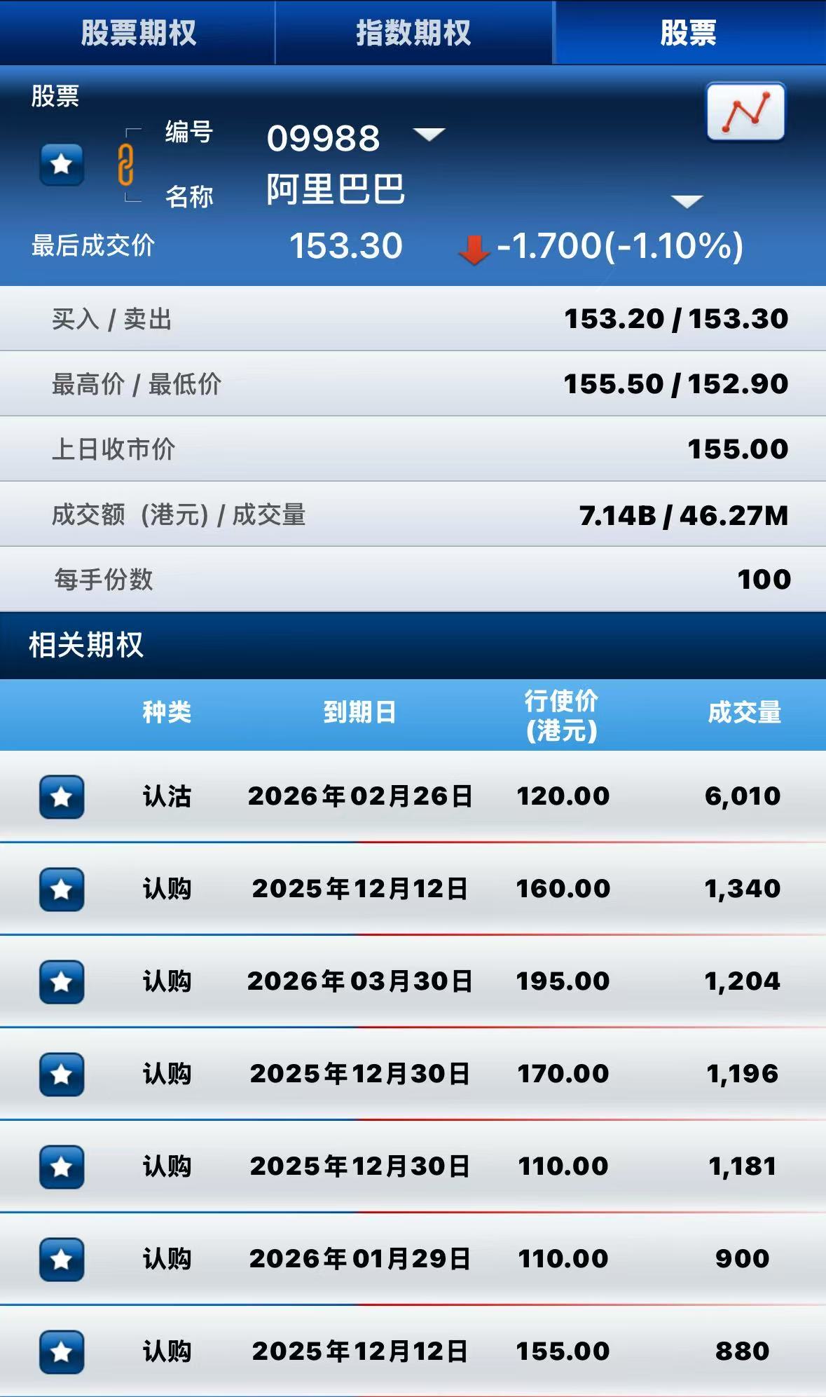 阿里巴巴-W跌超1%,期权方面:半日成交超3.6万张合约,其中于2026年2月26日到期行权价120港元的认沽期权成交量居前,成交超6000张合约。 $ALB.HK 20260226 120.00 PUT$
