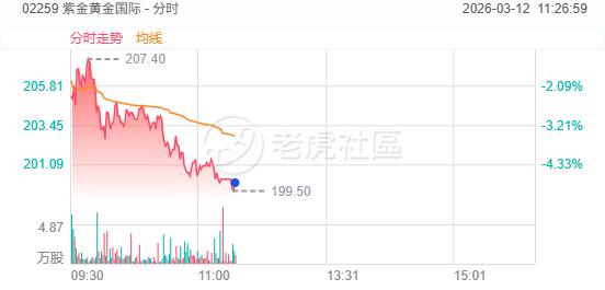 3月12日,黄金股下跌,紫金黄金国际跌超4%,招金矿业跌超3%,中国黄金国际跌超2%,强美元与通胀担忧压制金价,美联储降息节奏或仍存变数