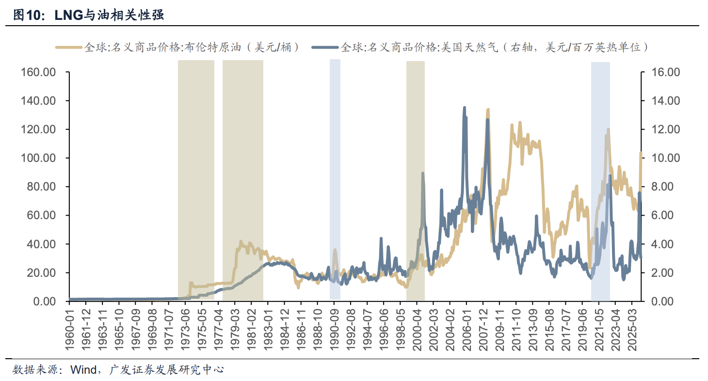 能源品方面,LNG与油价相关性较强:磨顶型油价下LNG价格持续上涨;油价快速回落形态下,LNG价格亦同步快速下跌。