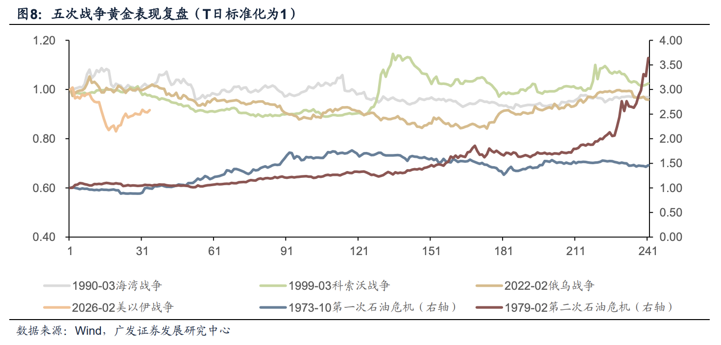 广发证券复盘五轮典型地缘冲突,第一次石油危机(1973年)、第二次石油危机(1979年)、海湾战争(1990年)、科索沃战争(1999年)及俄乌冲突(2022年),发现两种路径下资产走势存在系统性差异。