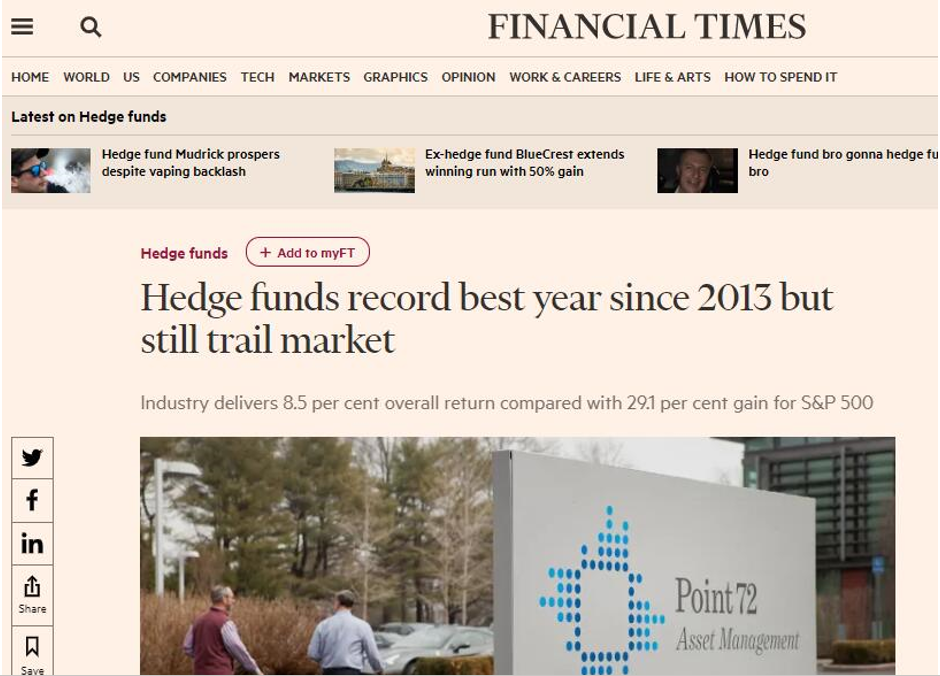 英国金融时报:对冲基金录得2013年以来最佳成绩但仍未跑赢大盘