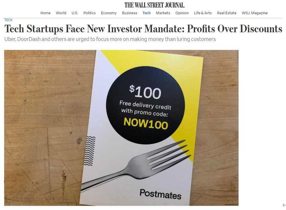 一些科技业的交易撮合者和初创公司的创始人透露,过去一年,严重依赖风投资金的企业表现令人失望,初创公司的投资者正在重新评估过去十年他们采用的方式:通过智能手机App提供有吸引力的交易为公司赢得忠诚的客户,以此打造一个市场领袖,只要这样的公司足够达,就会带来盈利,可能停止给客户补贴。投资者和企业的董事都在施压这类公司,要求他们提供更有利可图的商业模式。