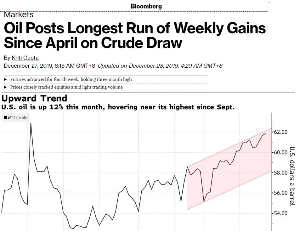 本月中美贸易争端取得突破,OPEC和俄罗斯等协议减产国一致同意加大减产力度,国际油价累涨约12%。