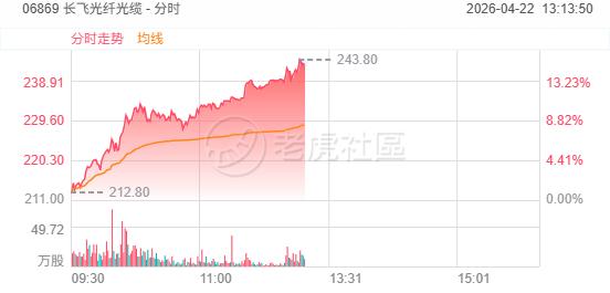 周三, 长飞光纤光缆 午后继续拉升,大涨超15%,年内已累涨超370%。消息面上,光纤行业近期呈现“产品量价齐升”的高景气态势。据报道,国内某光纤生产企业一季度光纤产销量同比增长近5倍,产品价格出现爆发性上涨,G.657.A2光纤价格由去年的每芯公里32元飙升至240元,涨幅达650%;另一家企业一季度产销量同比增长超35%,海外销量增速超55%。