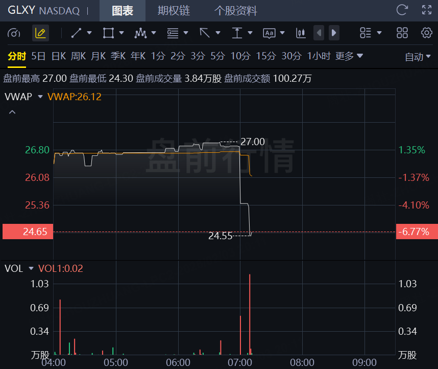 财报发布后,Galaxy Digital盘前跌超6%。